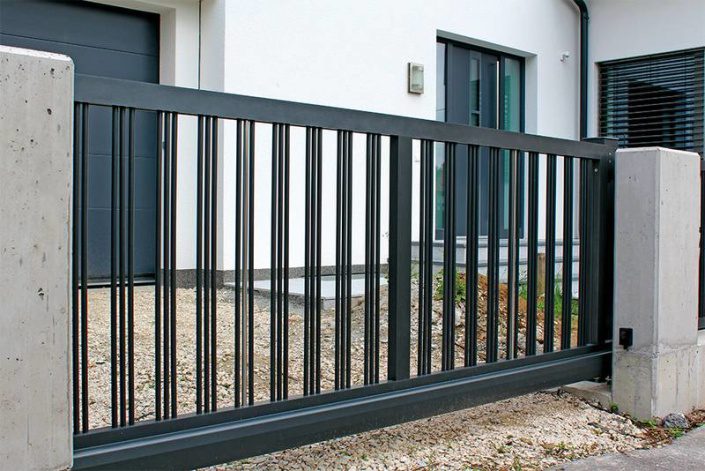 Gehtüren, Zweiflügeltore und Schiebetore im gleichen Design möglich.